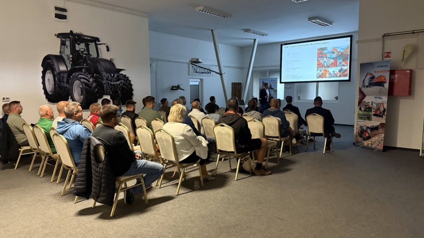 A találkozót Kecskeméti Sándor Ügyvezető Igazgató nyitotta meg, aki mesélt a Hitachival való közös munka elindulásáról, valamint az eddigi eredményekről. Utána Pánczél Szabolcs országfelelős (Hitachi Construction Machinery Europe – HCME) bemutatta az európai központot és alkatrész ellátási rendszerüket, ahonnan akár 24 órán belül tudnak alkatrészt eljuttatni partnereikhez. A Hitachi széles termékportfólióját Bárth Gábor termékmenedzser mutatta be, kezdve a mini kotrókkal, onnan haladva a nagyobb gépek felé. A mini portfóliójából 10 gép közül tudnak választani az érdeklődők 12 tonnától egészen a 6,3 tonnás gépekig. A midi lánctalpas kotró család 9,5 tonnától 38 tonnás gépig terjed és 8 típust ölel fel, ezeken belül több modellvariációval. A Hitachi igazán nagy gépeket is gyárt, amiből a legnagyobb gép eléri a több mint 800 tonnás méretet. A lánctalpas kategóriát a gumikerekes kotrók követték 10 tonnától egészen a 25 tonnáig, köztük több modell farsöpréses. A homlokrakodók is fontos szerepet játszanak a portólióban, ezek 5 tonnától 25 tonnáig érhetők el. Speciális igényekre pedig a Hitachi alapgépeket használó német KTEG gyártó kínál megoldást.