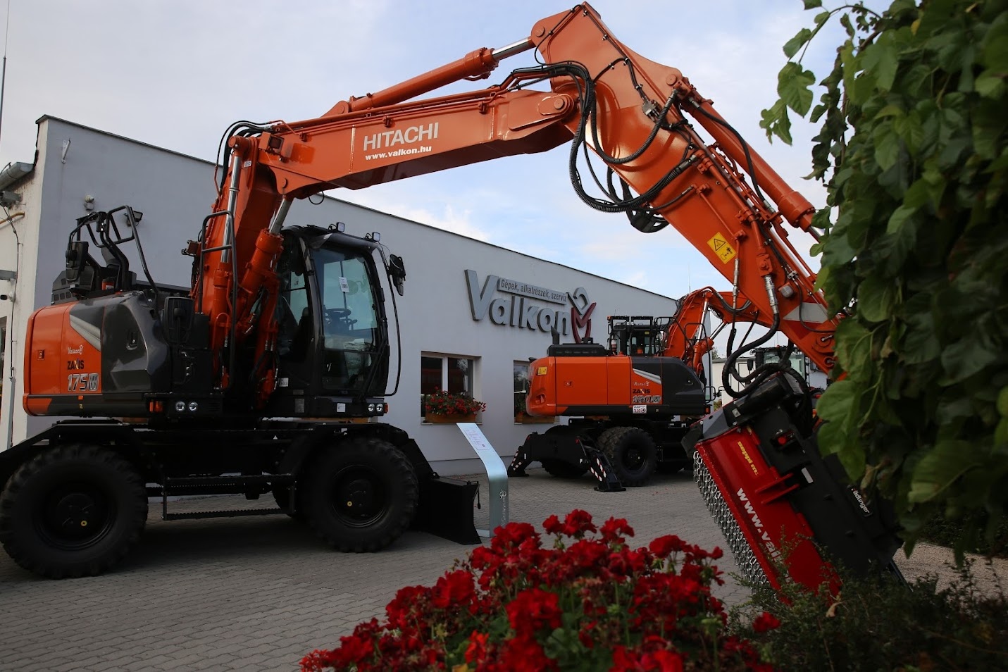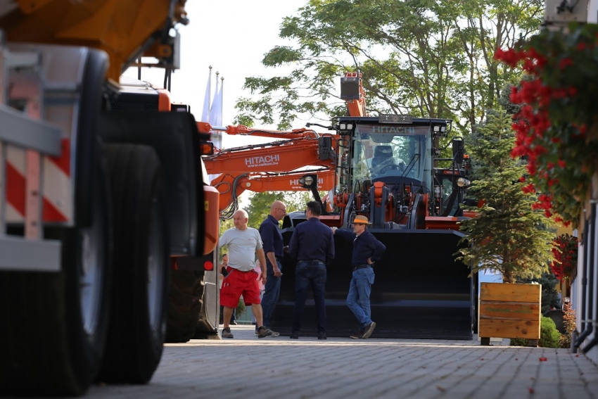 Az elméleti részt három állomásos telephely bejárás követte, ahol az első stációban az álló gépeket mutatták be, minden termékcsaládról ismertették a különlegességeket. A második állomáson a vevőszolgálat bemutatására került sor. Betekintést nyerhettek a résztvevők az alkatrészellátásba, a készletezésbe, valamint megismerhették a szerviz által nyújtott szolgáltatásokat. A digitális megoldások mellett 23 jól felszerelt szervizautó áll rendelkezésre, hogy minél előbb megoldást kínáljanak a felmerülő igényekre. A harmadik állomáson egy mini kotró (ZX26U-6), egy gumikerekes kotró (ZX150W-7), egy láncos kotró (ZX300LCN-7) és egy homlokrakodó (ZW180-7) tartott mozgógépes bemutatót, amelyek közül a három kotróra a Leica gépvezérlési rendszerei is fel voltak szerelve.
