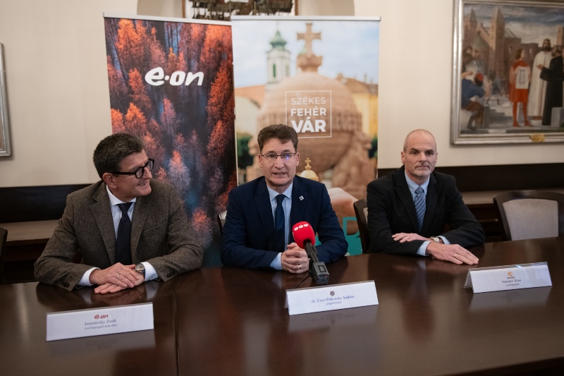A fejlesztésről szóló december 16-ai sajtótájékoztatón (balról-jobbra) Jamniczky Zsolt, az E.ON Hungária Csoport vezérigazgató-helyettese, Cser-Palkovics András, Székesfehérvár polgármestere és Szauter Ákos, a Széphő Zrt. vezérigazgatója