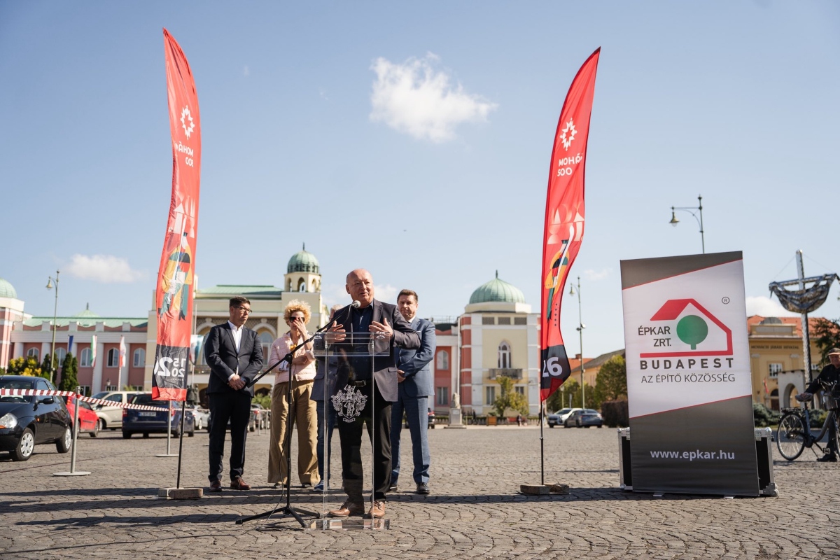 Borítókép: Pávkovics Gábor, Mohács polgármestere beszédet mond a mohácsi Széchenyi tér munkaterületének hivatalos átadásán Mohácson 2025. október 2-án.
